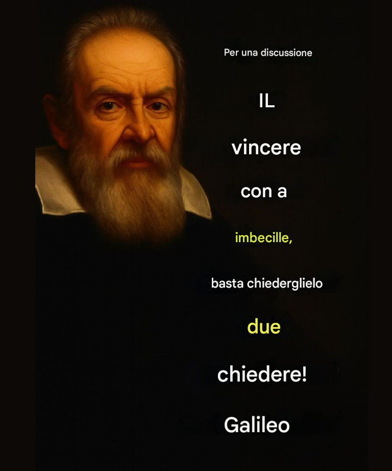 Galileo non solo rivoluzionò la scienza, ma ci lasciò anche una lezione magistrale su come affrontare l’ignoranza: come convincere gli sciocchi senza perdere la pazienza. Nel mondo di oggi, dove tutti si sentono in dovere di avere ragione, il suo consiglio è più attuale che mai: “Non discutere mai con uno sciocco; ti trascinerà al suo livello e ti sconfiggerà con la sua esperienza”.